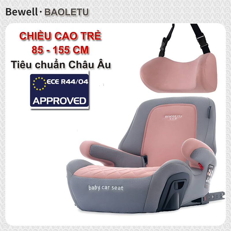Ghế ngồi ô tô cho bé Bewell (thiết kế Đức) chuẩn ISO FIX 9001-2000 với tựa lưng điều chỉnh và đệm bảo vệ đầu cho bé (hồng)