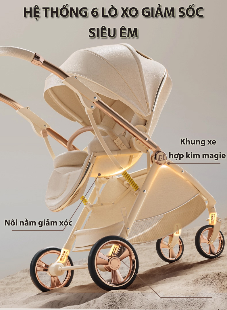 ● Xe đẩy nôi cao cấp cho bé có khung sườn tối giản mang lại tính thẩm mỹ cao, chịu tải đến 40kg.