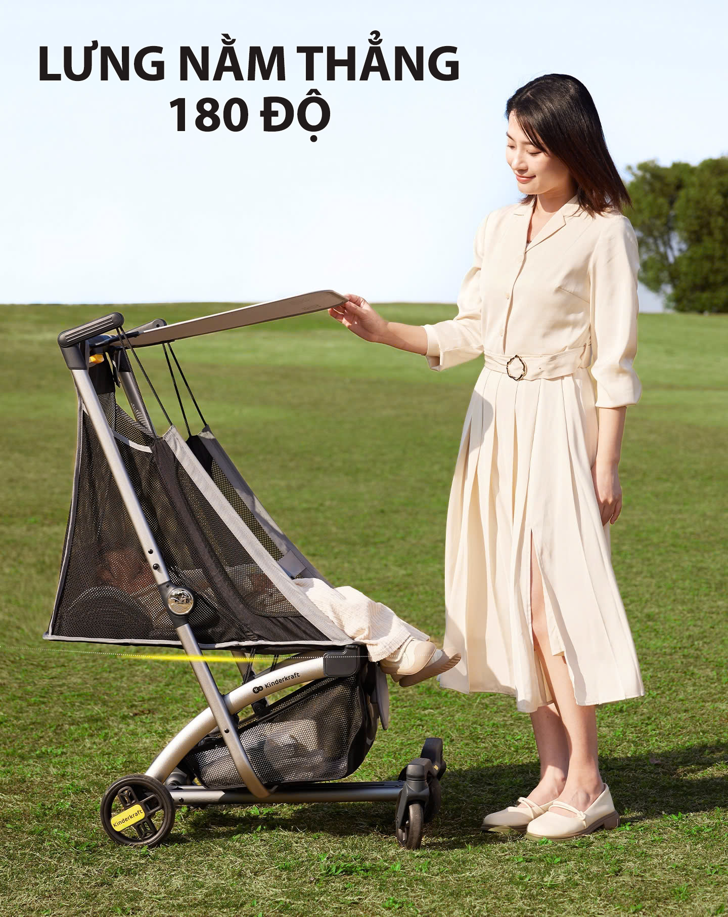 Một trong những điểm đặc biệt của xe đẩy Kinderkraft nằm ĐỨC là khả năng điều chỉnh được góc nằm của ghế nagồi cho bé từ ngồi đến ngả ngồi, giúp bé cảm thấy thoải mái và dễ chịu trong suốt quá trình sử dụng.