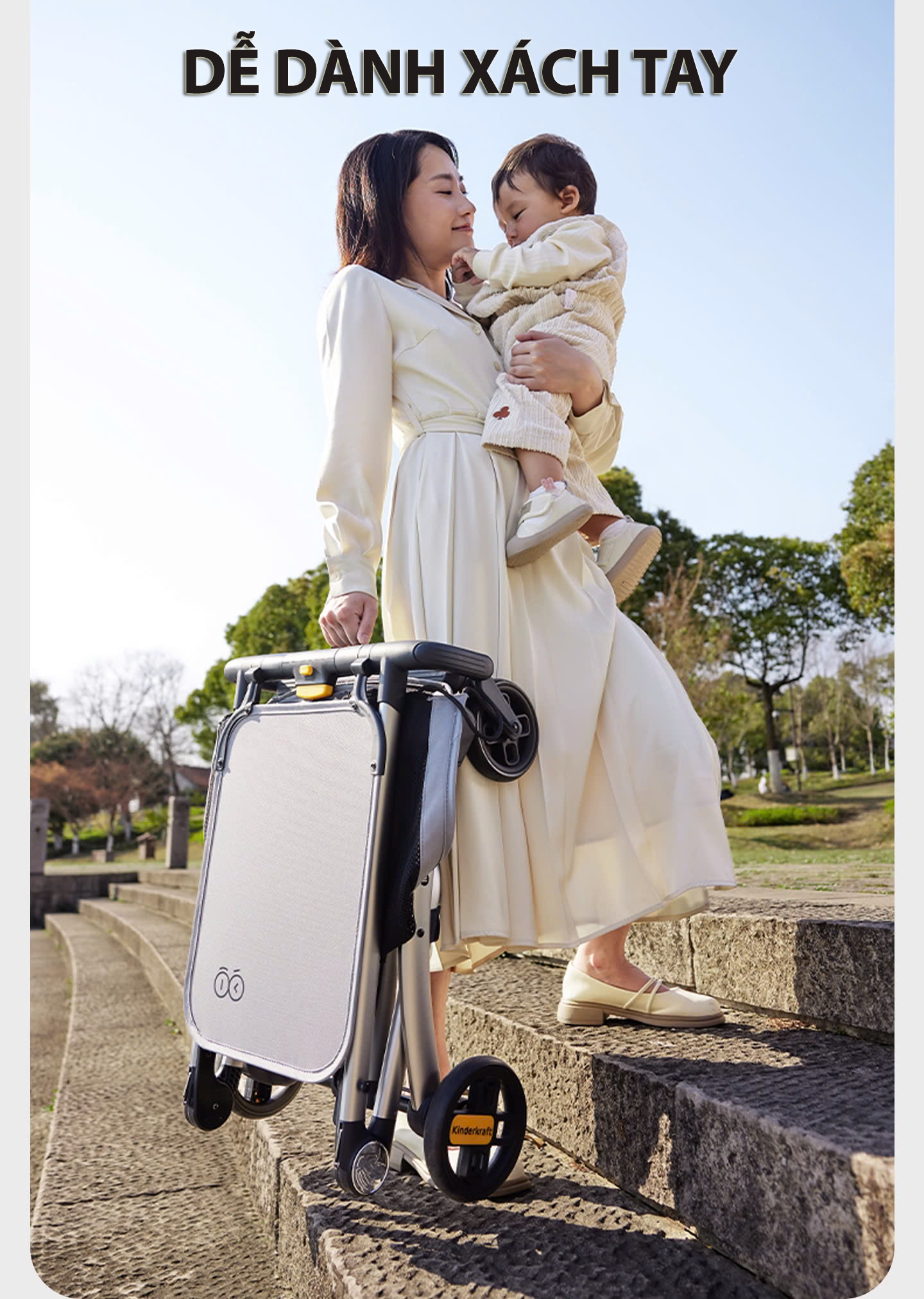 Với thiết kế nhỏ gọn, tiện lợi và khả năng vượt qua địa hình khó khăn, chiếc xe đẩy này sẽ giúp bạn và bé thoải mái khám phá thế giới xung quanh một cách dễ dàng và tiện lợi.