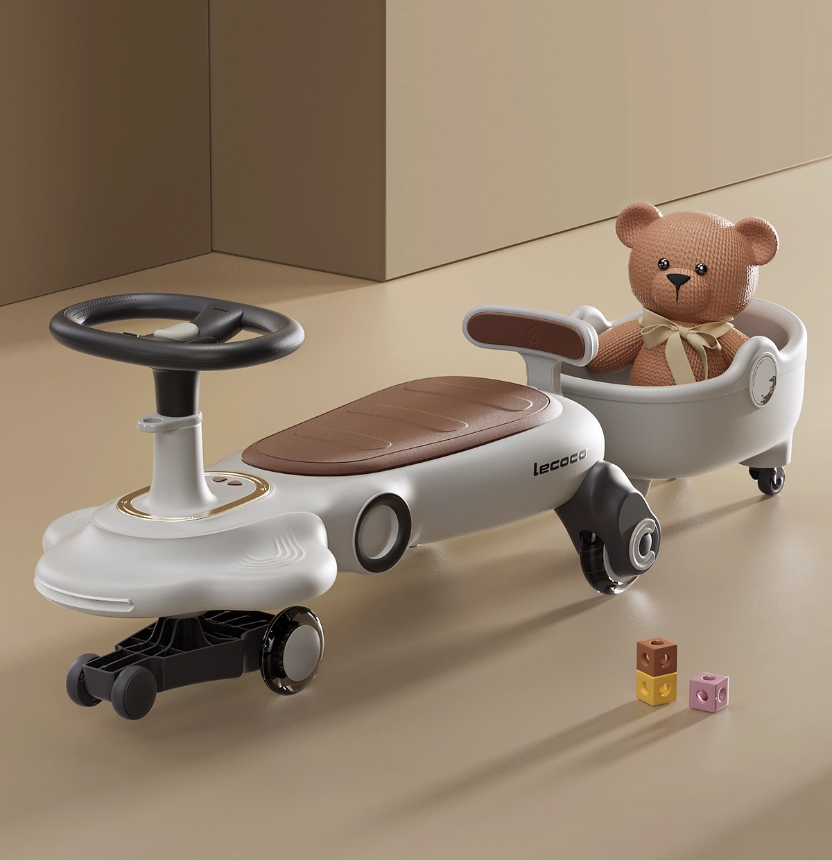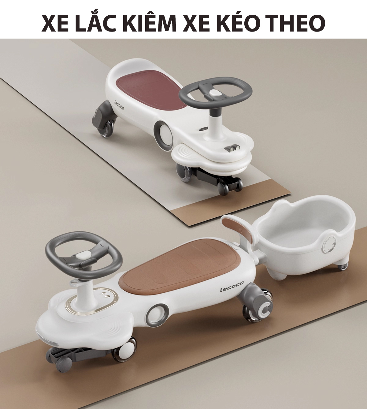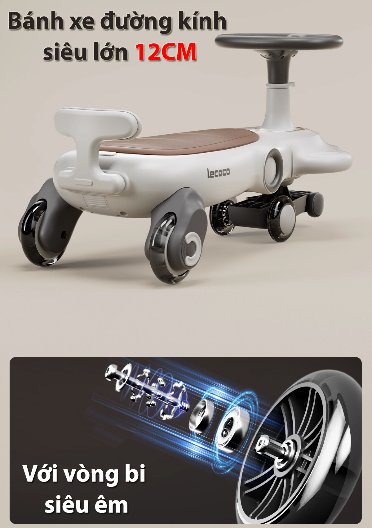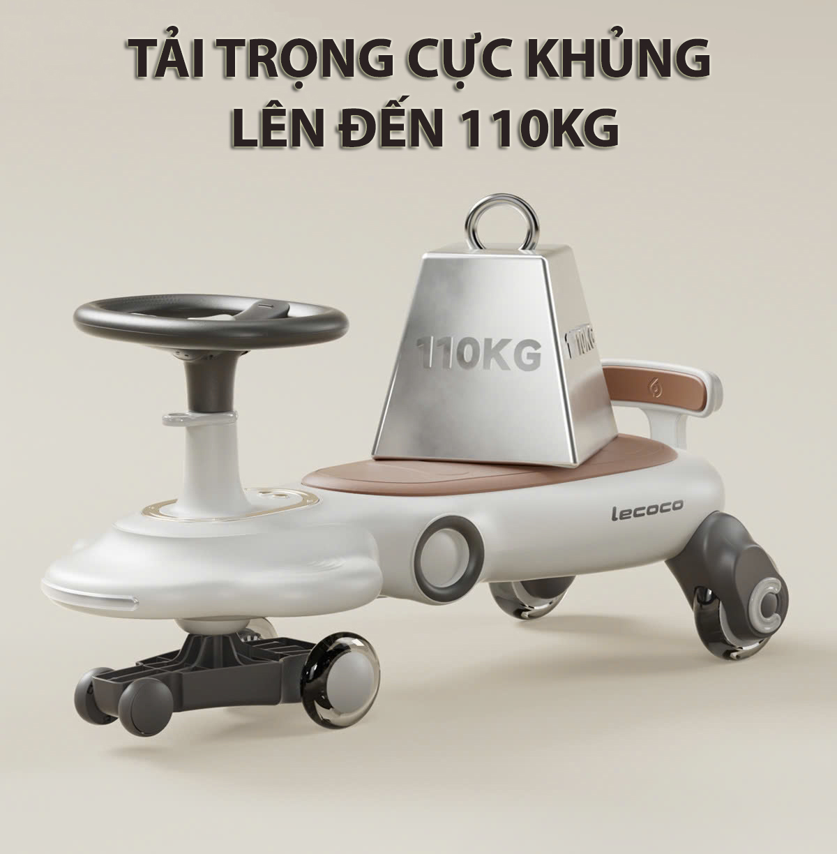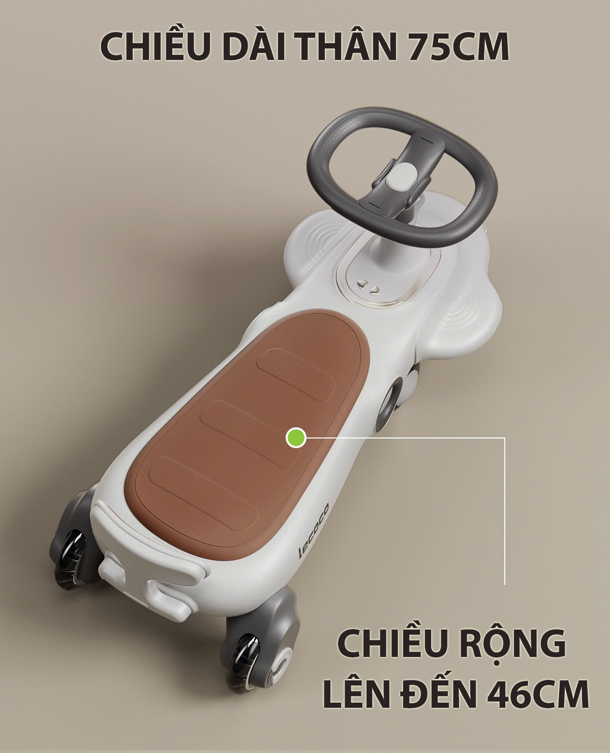 Xe lắc, xe chòi chân cao cấp lecoco với yên xe 2 NGƯỜI kèm hơn 20 bài nhạc tiếng Anh, bánh xe lớn có đèn LED, tải 80kg