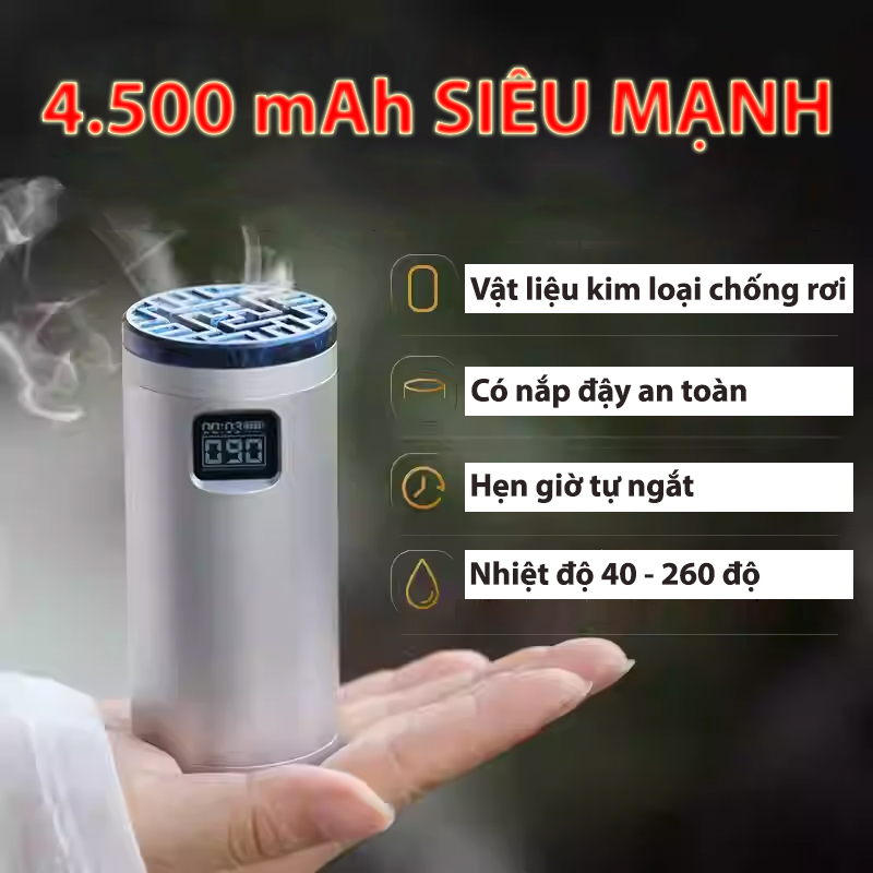 Lư hương xông trầm hương tích điện dung lượng cao 4500mAh với nhiệt lên đến 260 độ kèm LED hiển thị, hẹn giờ tự ngắt