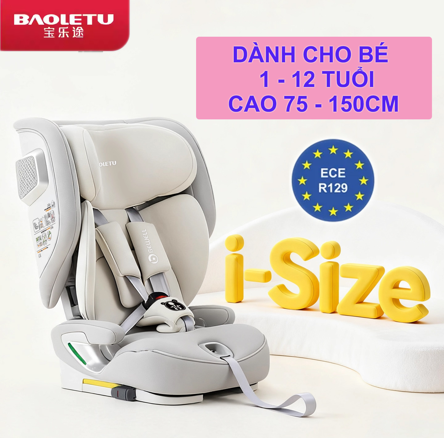 Ghế ngồi ô tô gấp gọn BEWELL BAOLETU cho bé 1 12 tuổi, CHUẨN ECE R129 nâng hạ độ cao, đai an toàn 5 điểm, ngả lưng 5 cấp