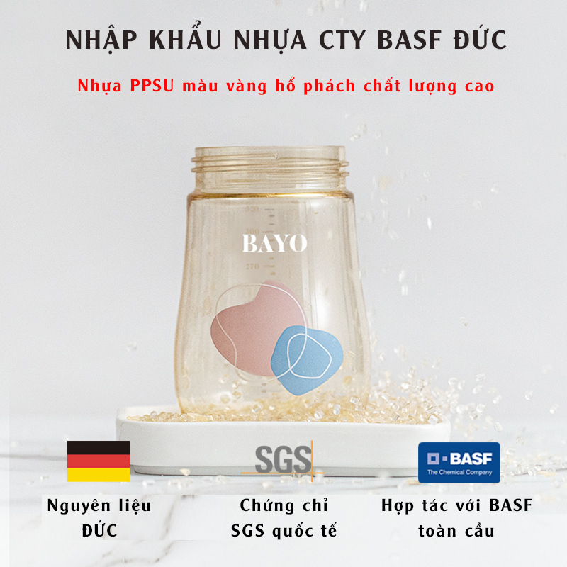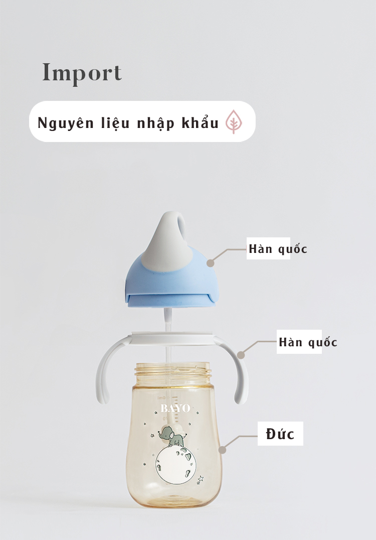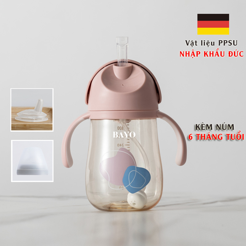 Bình tập uống nước cho bé BAYO chống sặc với núm ty đi kèm dành cho bé từ 6 tháng tuổi, nhựa PPSU chịu nhiệt 180 độ C