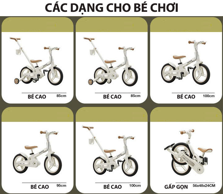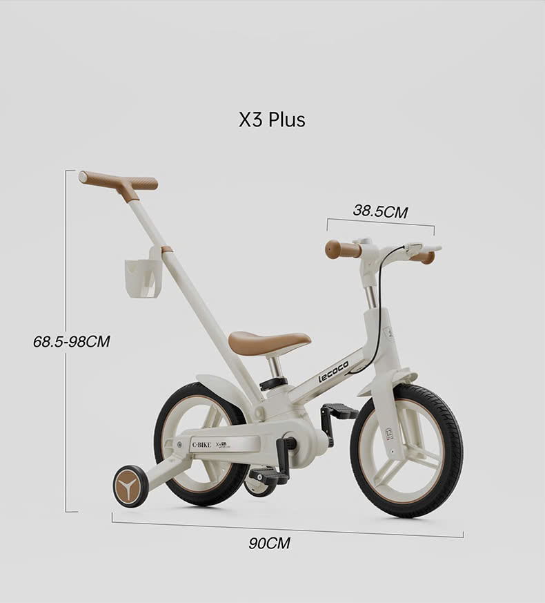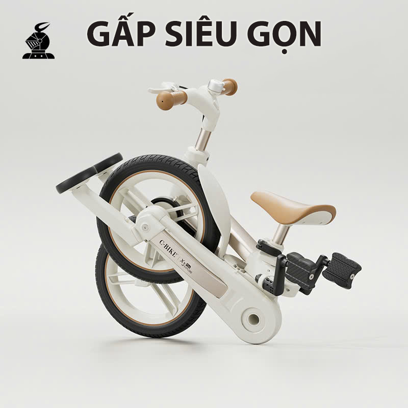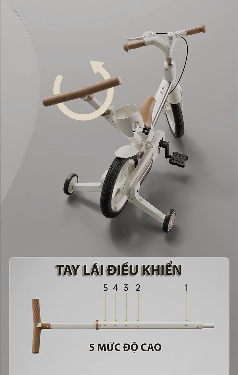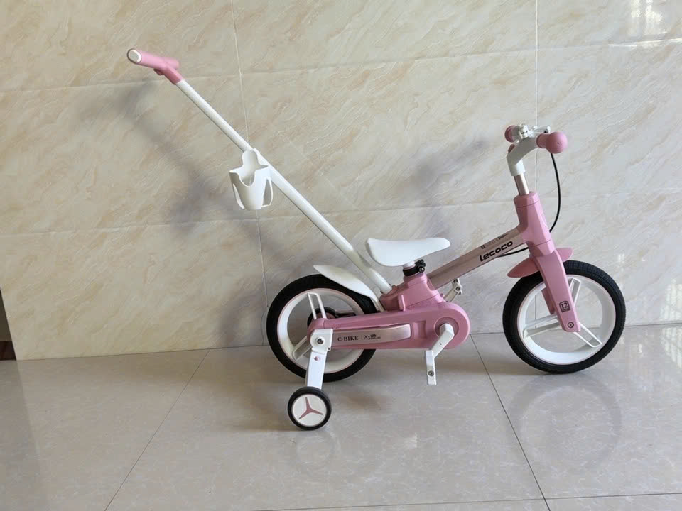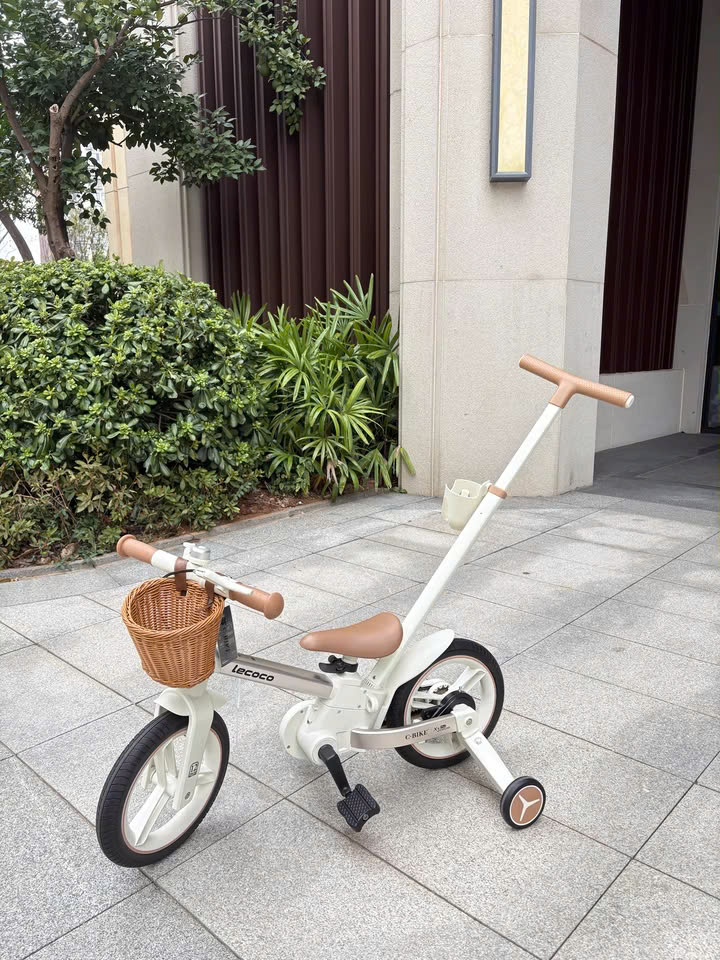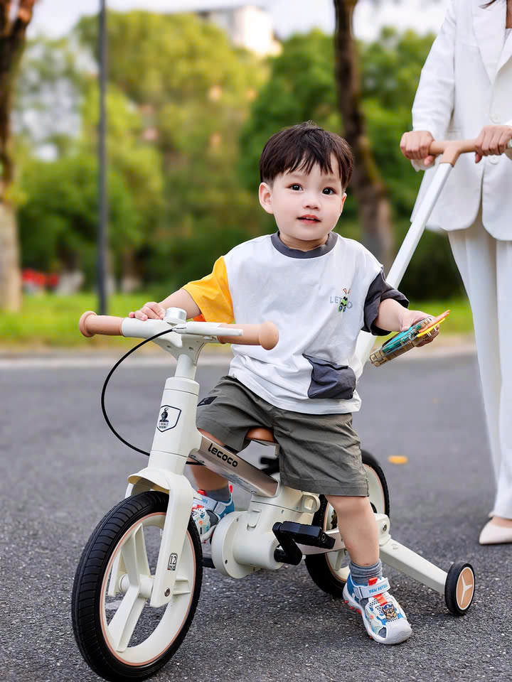Xe đạp 3 bánh gấp gọn LECOCO có xích trợ lực, xe chòi chân kiêm thăng bằng 4in1 cho trẻ 2-5 tuổi kèm tay đẩy sau