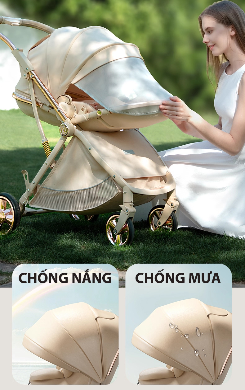 ● Xe đẩy nôi cao cấp thế hệ mới có mái che chống 99.9% tia UV.