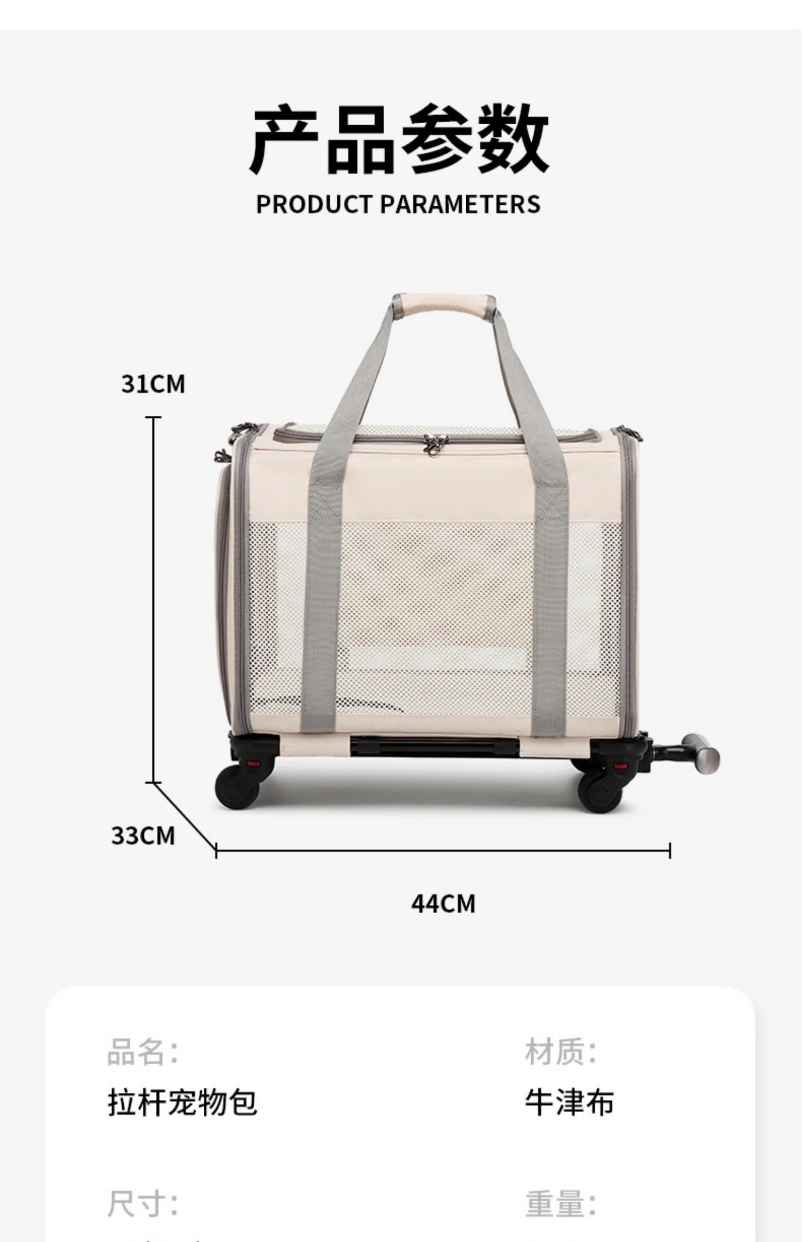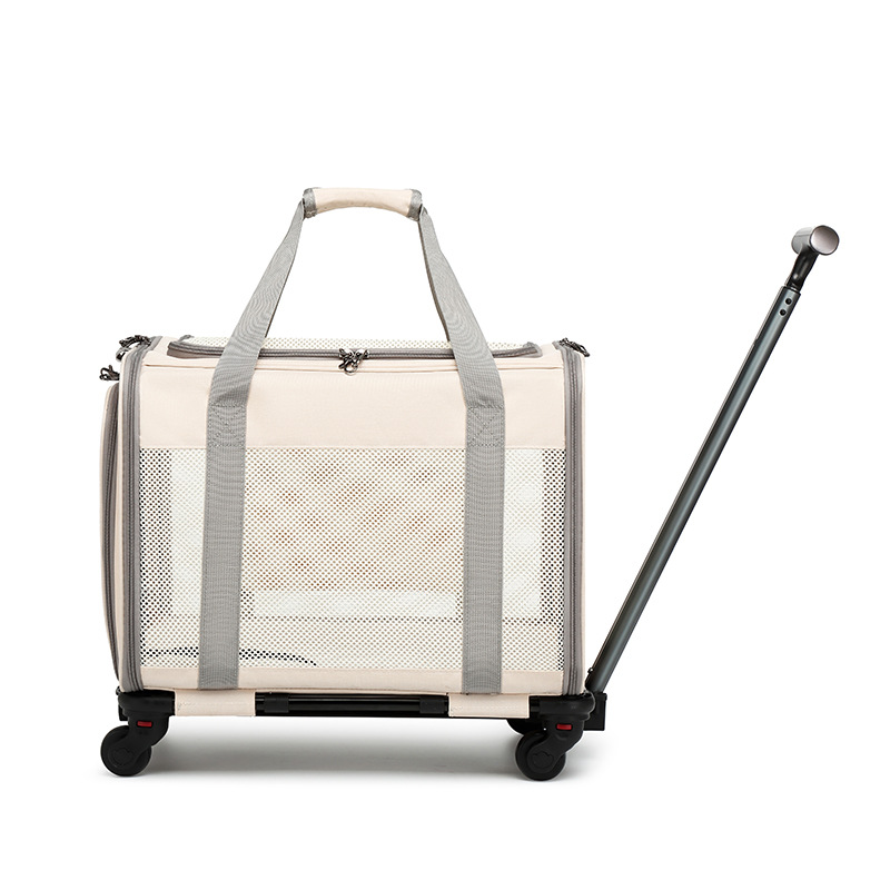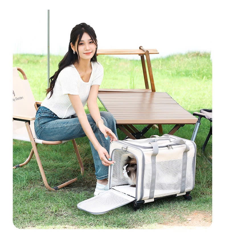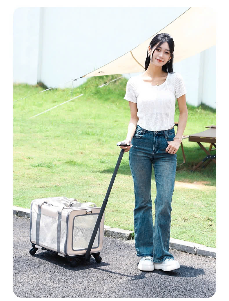 Túi kéo thú cưng 10 - 12kg đi du lịch có bánh xe gấp gọn tiện dụng, tay kéo nâng hạ độ cao kèm thảm lót